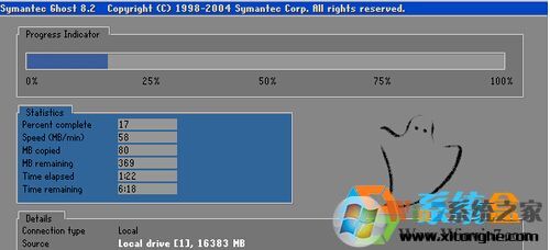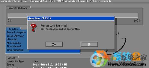 6、接着还是点击OK,开始整个磁盘的复制过程(出现确定框选择OK),这个时间和你其中文件多少有关,文件很多的话可能长达几小时;