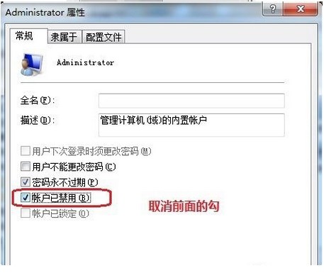 3、如果要禁用的话把【帐户已停用】选项勾打上即可。