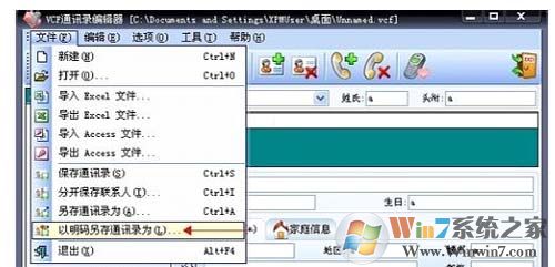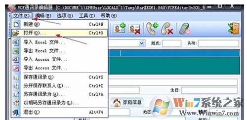 1、运行VCF通讯录编辑器软件,单击“文件”菜单中的“打开”命令