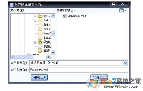 4、弹出“另存通讯录文件为”对话框,选择要保存通讯录文件的位置,单击“确定”按钮
