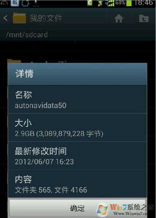 当然您也可以把预置在手机内的导航地图转移到存储扩展卡上:进入菜单-点击"我的文件"选择手机内存(Device storage)-找到导航地图数据包(autonavidata50),选择右上角"复制"(不可直接移动,请复制后按后面指引删除),然后返回到上级目录,点击扩展存储卡(SD memory card)