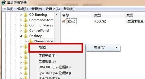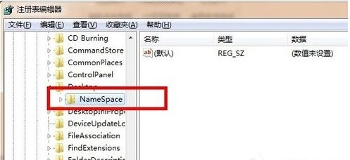 5、点击红色框内的“NameSpace”文件夹,右边出现“默认”等;