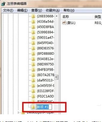 7、点击新建项后,出现如下界面,将新出现的项的名字(红色框框内显示)重命名为“{645FFO40——5081——101B——9F08——00AA002F954E}”------------请注意,要把大括号也带入;
