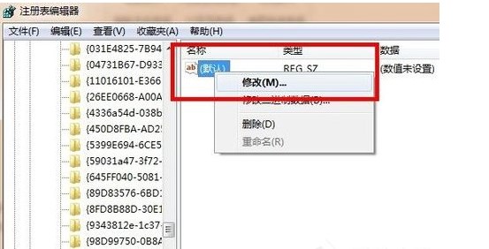 8、点击新建的项,右边会出现默认等显示,右键点击“默认”二字,点击修改,出现如下界面;