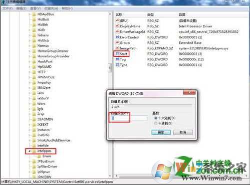 5、在打开的“注册表编辑器”中,先按这个目录找到Intelppm: