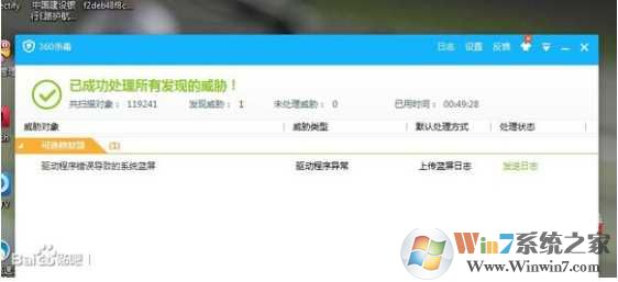 1、通过360蓝屏查询得知可能是驱动导致的0X0000007E