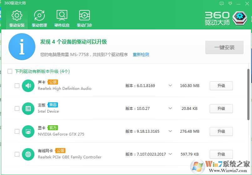2、安装驱动大师,或是驱动精灵等工具,对系统中可升级的驱动都重新升级一遍;