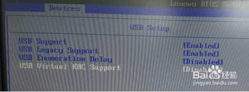 2、找到Devices,通过键盘方向键找到USB Setup,按键盘上的enter进入该设置界面
