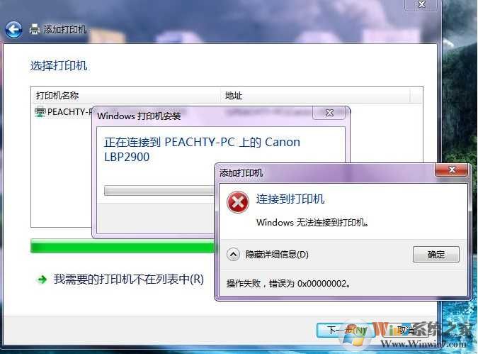 由于当前Win7系统中不存在打印机驱动,而共享打印机的电脑系统版本和win7的不一样,所以驱动不兼容。