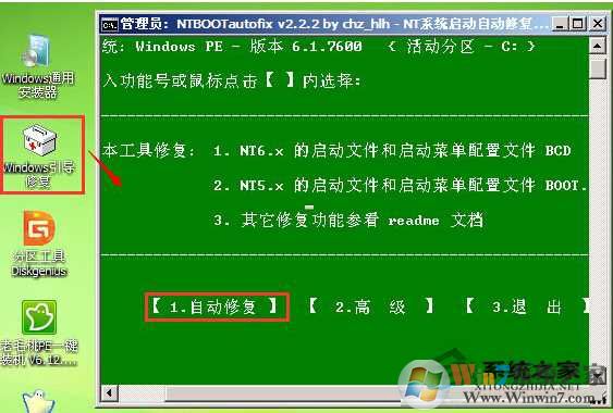 2、进入到PE后,一般桌面上都会有一个“Windows引导修复”图标,双击后如下并选择“自动修复”;