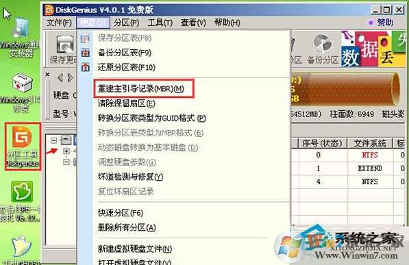 2、然后在菜单上点击“硬盘”——“重建主引导记录(MBR)”选项,出现确定后点“是”;