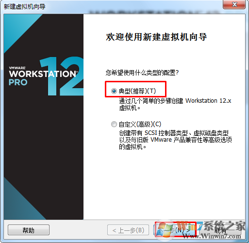 2、然后我们就会进入到新建虚拟机向导,这里选择典型模式,下一步