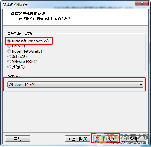 6、选择microsoft windows 操作系统 和win10 64位操作系统
