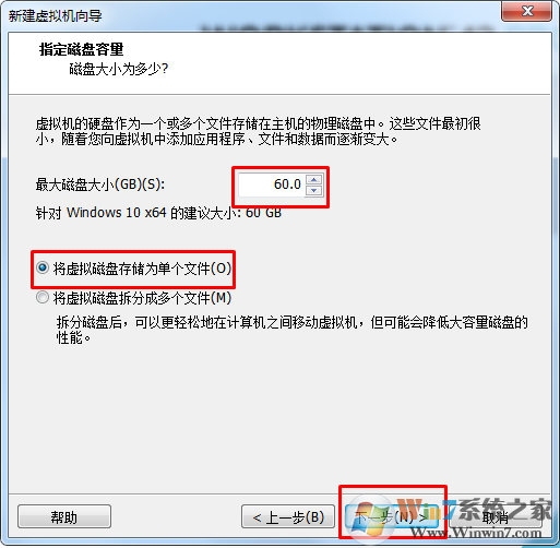 8、因为win10所需的内存空间比较大,这里我们一般选择位50到60GB