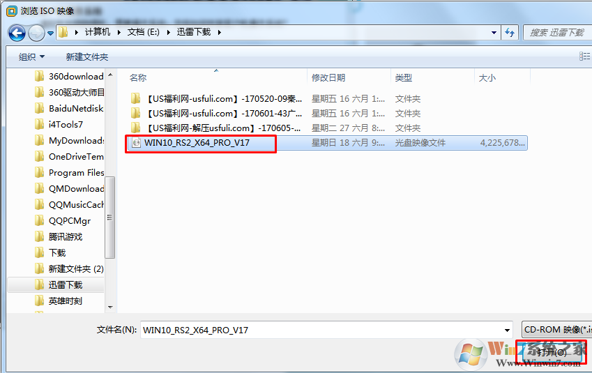 4、选择到我们刚刚下载好的win10系统目录下,点击选择win10系统镜像