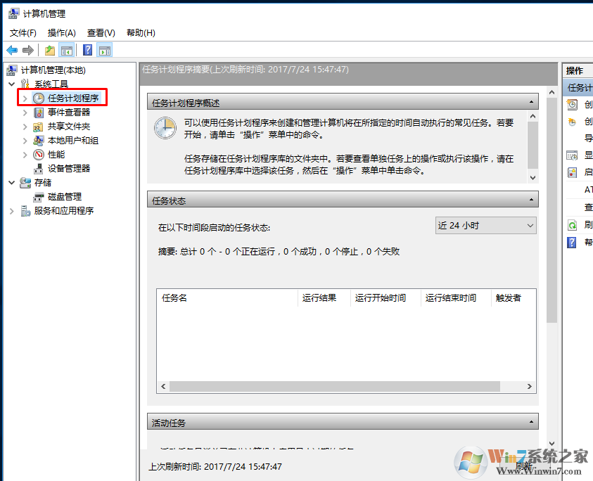 3、点击任务计划程序库,进入MicrosoftWindowsWS。