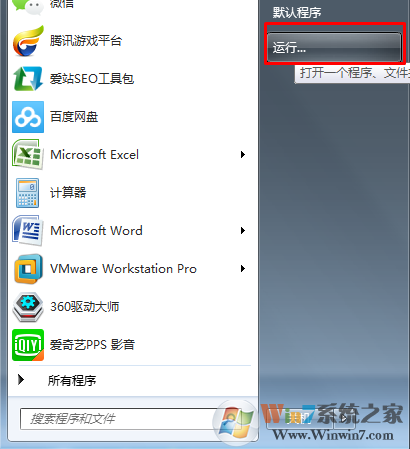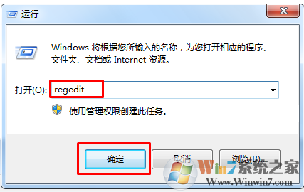 1、在开始菜单中点击运行或者是win+r直接打开,然后输入regedit并且回车;