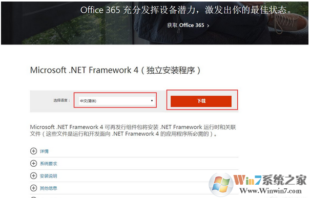 4、现在来到Microsoft .NET Framework 4.0官网,选择简体中文版,然后单击“下载”。