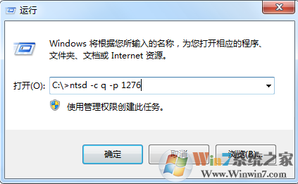 当在“任务管理器”中结束进程时提示“不能终止进程”的话,我们可以用“NTSD”命令强行终止进程,使用格式为:C:\>ntsd -c q -p 进程的PID值 即同时按下Win键和R键或者在“开始”菜单中,调出“运行”并输入“ntsd -c q -p 1276”即可,1276是记事本的进程PID。