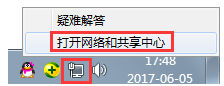 2、在获得了局域网中尚未分配的IP地址以后,就可以将此IP地址设置为当前IP地址受限的电脑啦。打开“本地连接”,(其中一种方法是右击任务栏网络图标,从中选择“打开网络和共享中心”项进入,也可以通过控制面板相关项进入);