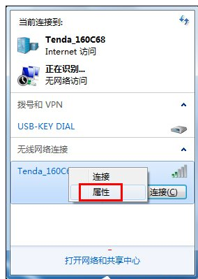 1、当出现“Windows无法连接到热点”提示时,表示输入热点验证密码错误。此时右击无线热点,从弹出的菜单中选择“属性”项。