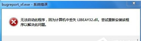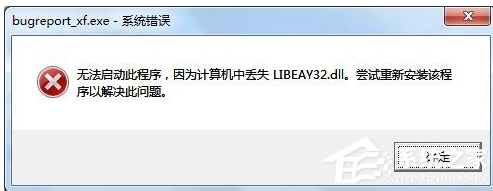 近日有网友在使用Win7系统的时候遇到了 BugReport_xf.exe 系统错误提示,详细内容位“无法启动此程序,因为计算机中丢失libeay32.dll。尝试重新安装该程序以解决此问题”,这是怎么回事呢?其实BugReport.exe是一个进程文件,当程序出错的时候会进行返回报告。那么遇见BugReport_xf.exe-系统错误时我们该怎么怎么办呢?下面我们就一起来学习一下Win7系统提示BugReport_xf.exe-系统错误的解决方法。