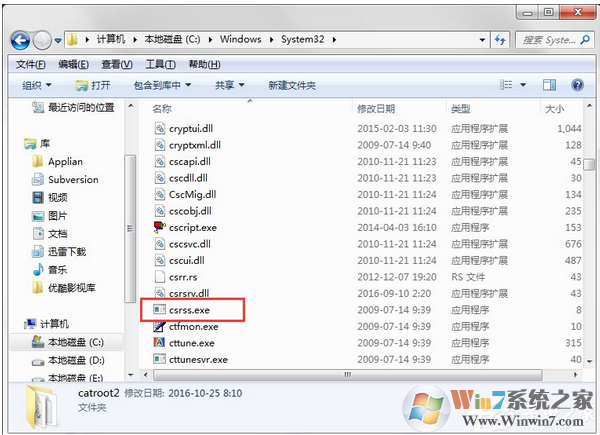 5、C:\Windows\System32 文件夹中的csrss.exe是系统文件,主要还是调用动态链失效引起的。