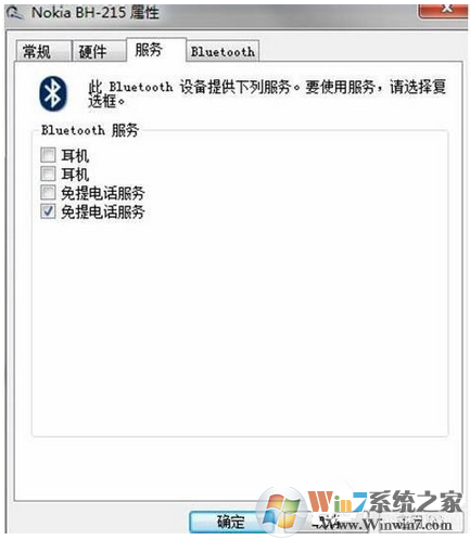 5、在蓝牙耳机上点击右键,选择“属性”,在弹出的窗口中选择“服务” ,如图: