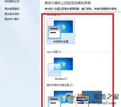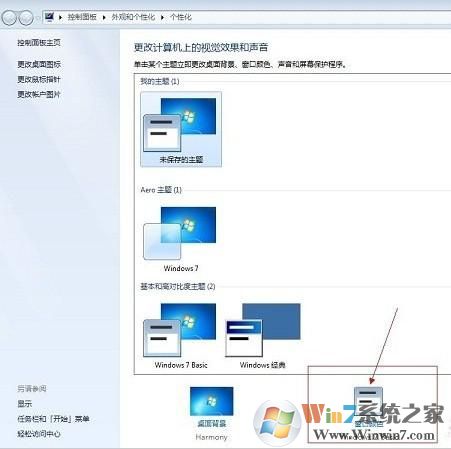 2、进入个性化设置后,可进行更改Win7配置方案了,比如更换下主题,即可自动变换配色方案了。我们找到Windows7 basic,点击后就会换成相应的配色。