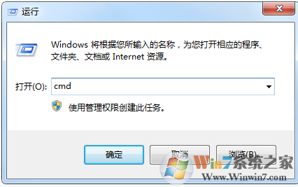 1.点击开始-运行或按Win+R,在运行中输入 “cmd” ,回车。