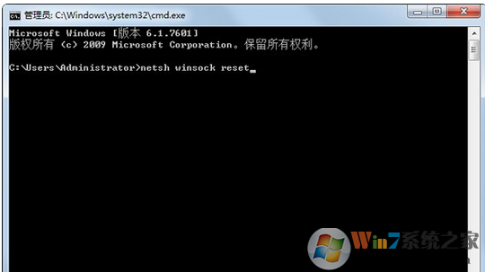 2.在cmd中输入 “netsh winsock reset” 回车。