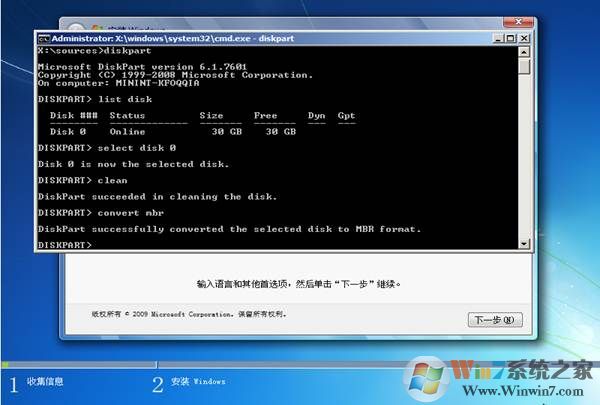 7、输入“convert mbr”命令并按下“回车”键来将您笔记本的硬盘的分模式从GPT模式转换为MBR模式: