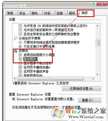 1、首先第一个我们先确定网页是不是设置了不显示图片,我们点击浏览器右上角的“工具”-“Internet 选项”!然后切换到“高级”!往下拖到多媒体里面就有一个显示图片的选项!这前面需要划勾!!