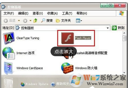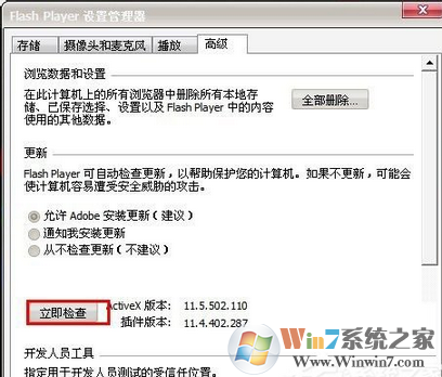 2、接下来我们来检测一下flash player版本是不是最新的。检测方法。点击开始然后选择控制面板!在控制面板里面找到flash player、双击进入切换到高级选项。然后点击立即检测即可。如果不是最新的就更新一下!!