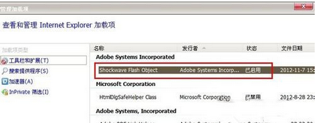 3、然后我们点击浏览器右上角的工具。选择管理加载项!!启用shockwave flash 0bject-然后点击确定确定
