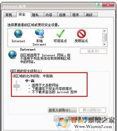 4、如果不行我们就把浏览器的安全级别调低一点!!点击浏览器右上角的工具。选择Internet 选项。然后切换到安全。把级别调到低。或者是中等!!