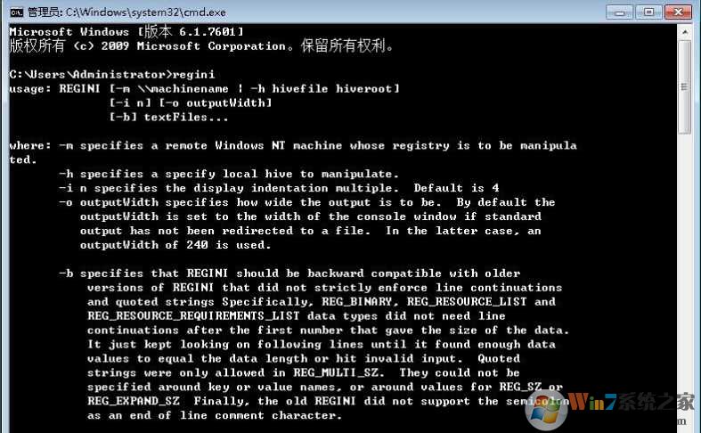 然后保存regini.ini 在命令行下导入regini.ini的命令是: