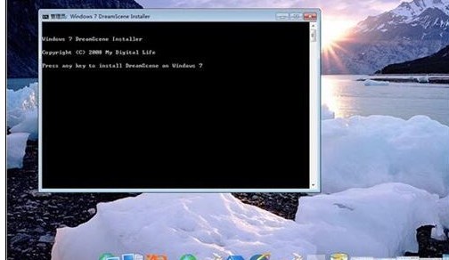 双击下载的这个补丁,运行后出现如下界面,按任意键这个窗口即开始不断的变化,几十秒后再按任意键,窗口消失,证明我们的补丁安装成功,Windows7动态桌面功能已经顺利打开。
