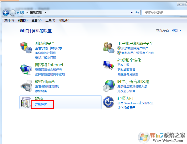 2、在控制面板中选择“程序和功能”或者卸载程序,并双击打开程序和功能页面