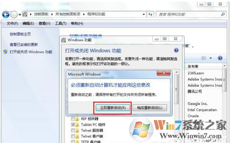 8、由于IE9是系统的集成软件,所以在卸载此软件是会要求我们要重新启动系统,重启电脑后,就完成了IE9的卸载。