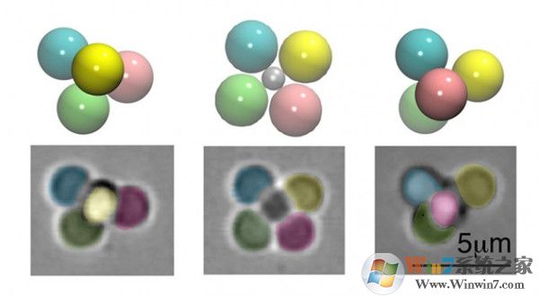 这个系统利用与中心球体相连的纳米颗粒进行数据存储。当中心球体较小时,外围颗粒能够稳定的排列,存储数据;当中心球体变大时,颗粒就可以重新排列,存储不同的信息。研究团队利用聚合物材料制造了一个包含1个中心球体和4个纳米颗粒的集群。当液体被加热时,中心球体膨胀,颗粒随之进行可预测的重排。虽然4个纳米颗粒只有两种不同的组合方式(和比特一样),但研究者们计划用更多的颗粒来制造存储团。