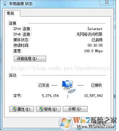 3、打开 “本地连接状态” 窗口后,点击属性按钮,如下图: