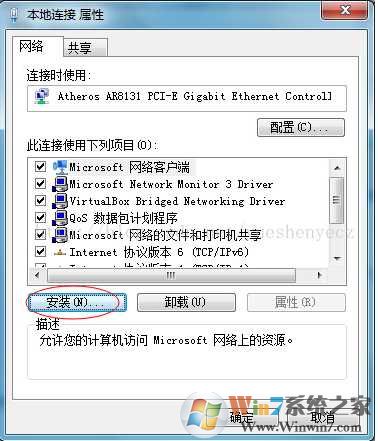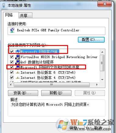 3. 勾选上 "Microsoft 网络客户端" 和 "Microsoft 网络的文件和打印机共享" ,一切就OK了