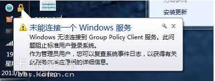 出现这样的提示主要是由于group policy client服务未能正常启动导致的。