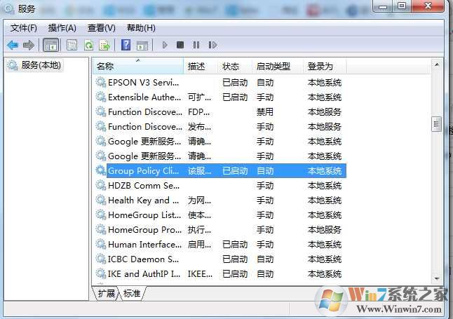 2、然后在服务中找到group policy client服务 看是不是没有启动,一般该服务是强制自动启动的;