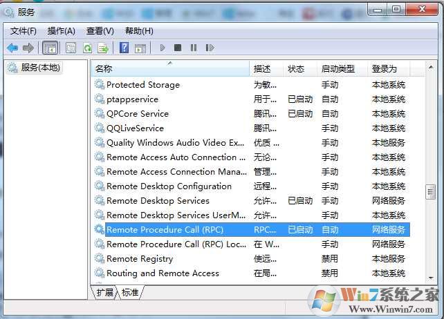 3、通过依存关系我们看看Windows7中的Remote Procedure Call (RPC)是否启动,如果是启动的,那么就不用再查下去了。