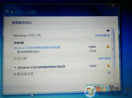 Win7 Windows无法自动检测此网络的代理设置 解决方法