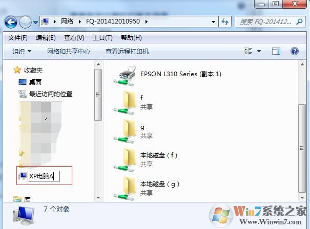 5、然后共享计算机就会在左侧的收藏夹上了,下次打开也是很方便,而且我们也可以重命名来设置你需要显示的名称,如XP电脑A