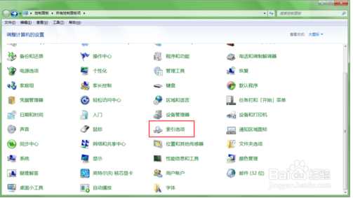 2、然后在控制面板中打开“索引”项;找不到的可以调成小图标查看方式;