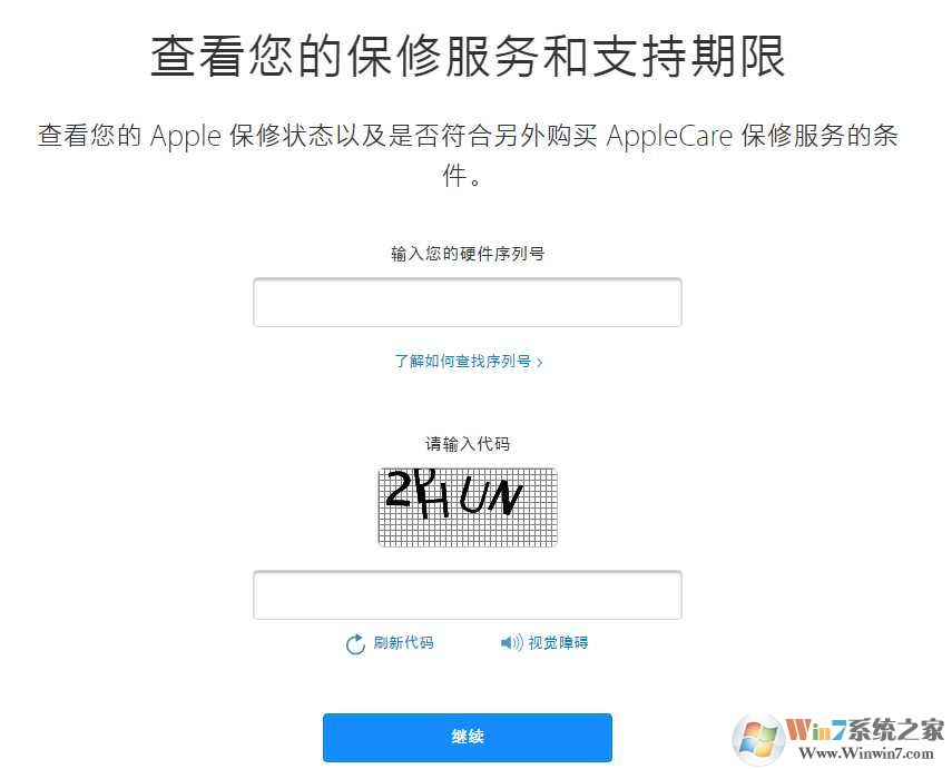 2、进入到苹果查看服务和支持期限页面之后,我们输入获取到的iPhone6序列号,即可查询iPhone6激活日期了.